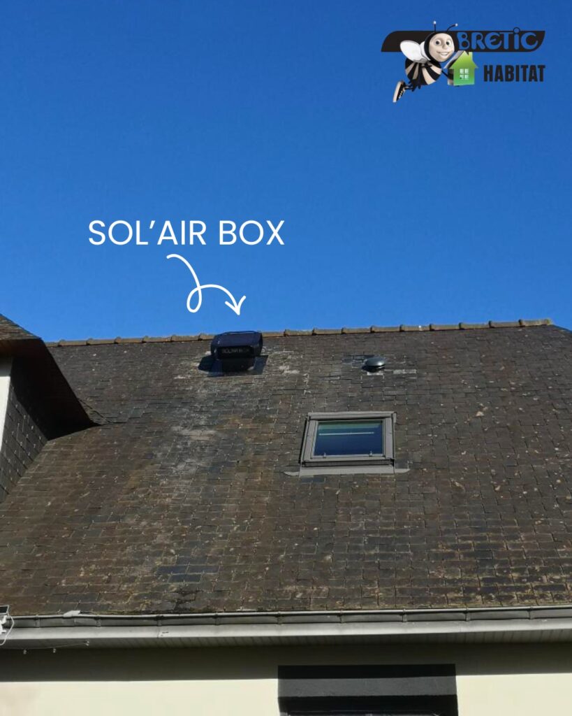 Marc & Ali sont intervenus pour installer une Sol’air Box de la marque LABO AAI, un extracteur d’air solaire conçu spécialement pour améliorer la ventilation des combles. L’isolation & la ventilation des combles jouent un rôle essentiel pour préserver le confort & la performance énergétique de votre maison.