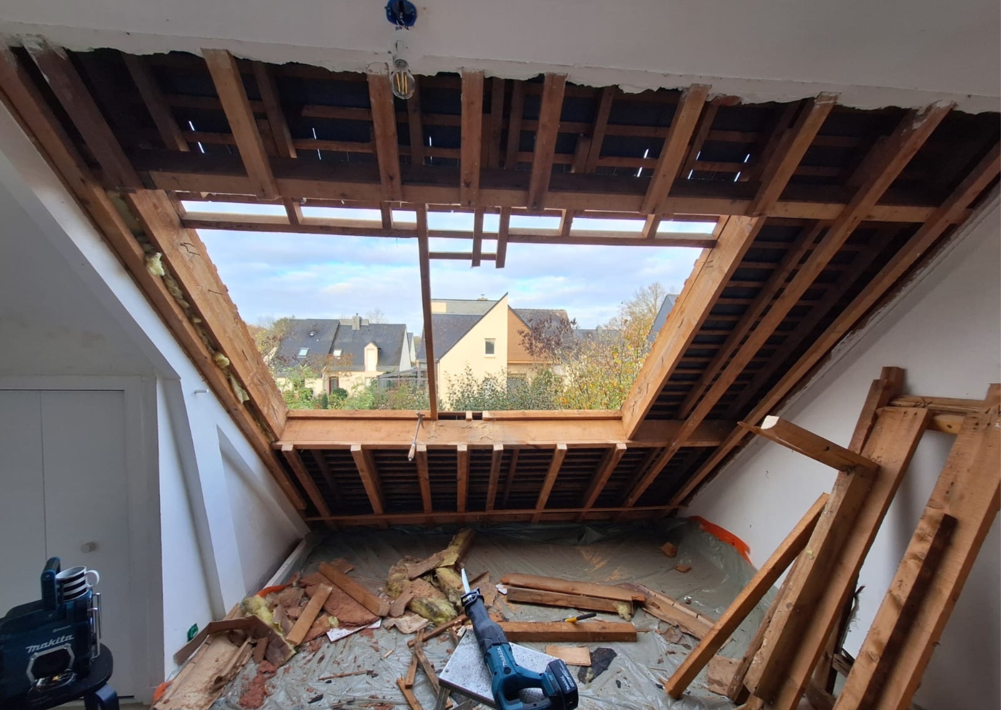 • Reconfiguration de la charpente, afin d’adapter l’ouverture à un format plus large, tout en respectant la structure d’origine de la toiture.