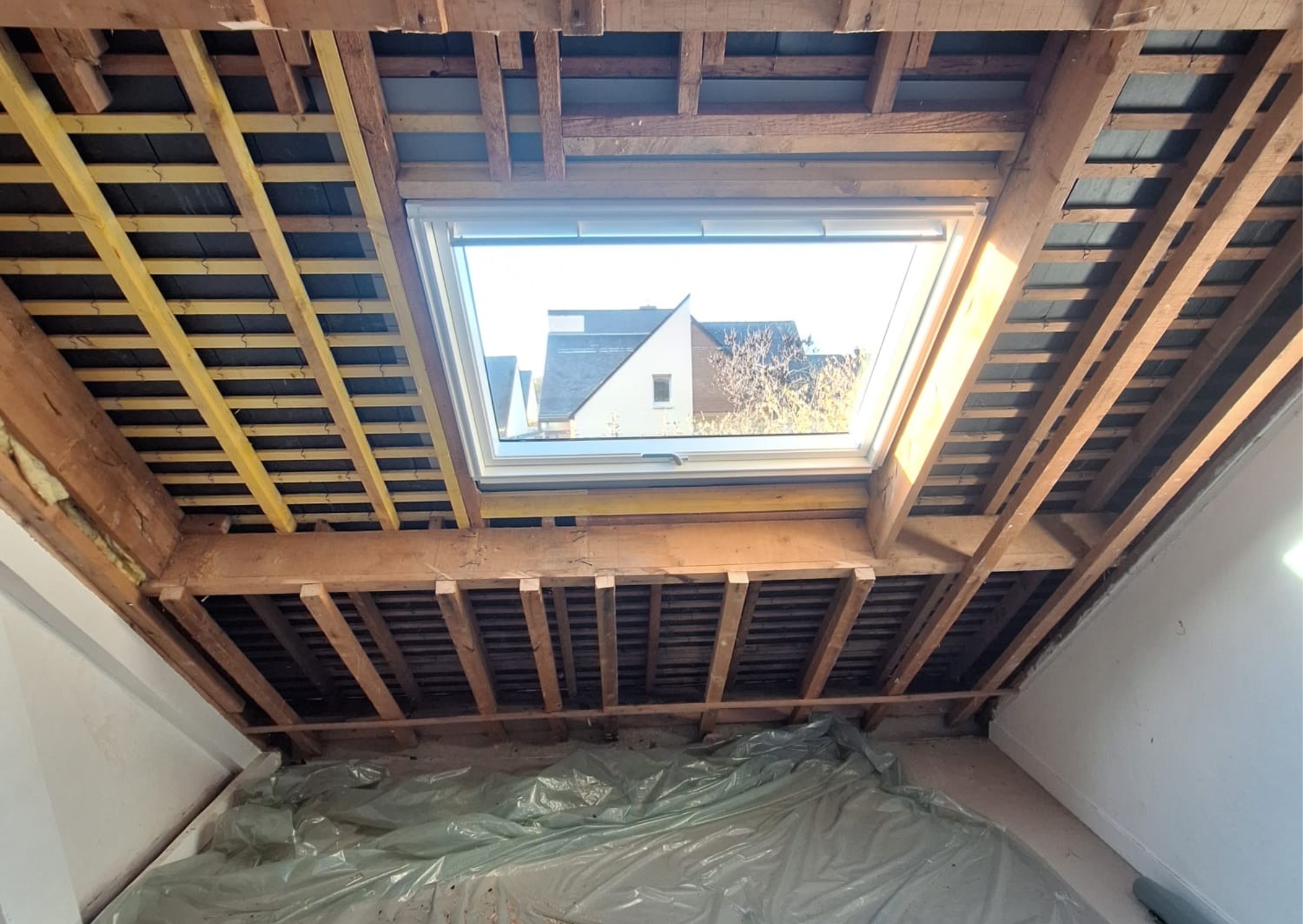 A Pacé, en Ille-et-Vilaine près de Rennes, Nicolas & Alexandre ont déposé deux anciens VELUX® de petites dimensions pour les remplacer par un seul VELUX® de grande taille, mieux adapté à la pièce et beaucoup plus performant en termes de luminosité, d’isolation et de confort thermique.