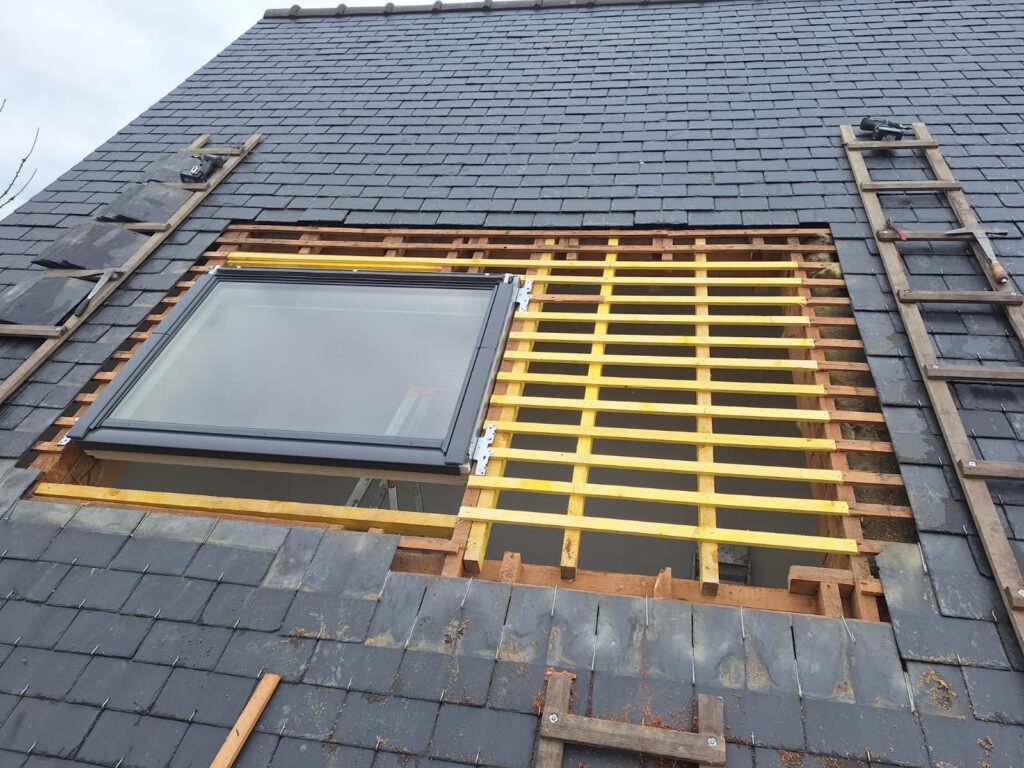 • Pose du nouveau VELUX® avec son système d’étanchéité conforme aux normes actuelles, indispensable face aux conditions climatiques bretonnes.
